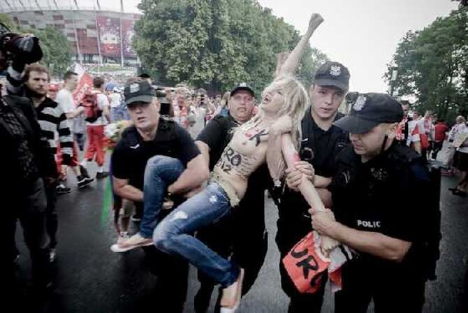 - More than 400 people "zalajkowaĊo" is a picture on my private profile. Then I read: "Photo violate the rules of Facebook, contains offensive content." So I understand that it contained pornography, violence, and hate - says Rigamonti. I recalled how last Friday, June 8, shortly before the match between Poland and Greece in the crowd of fans ran out young girls dressed only in jeans. - The naked breasts and bellies were powypisywane texts like: FUCK EURO. I shouted out what they had written on their bodies. The whole operation lasted no longer than 40 seconds. The police caught a woman armed with fire extinguishers and carried them to their cars.